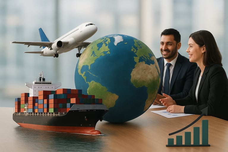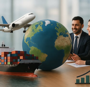 To empower businesses and governments across the globe by providing innovative consultancy, seamless trade solutions, strategic funding, and transformative travel services.
